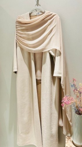 BEIGE CREPE SHAWL ABAYA WITH SHAILA