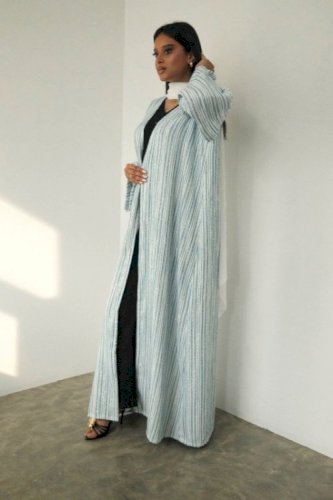 GREEN STRIPED TWEED ABAYA