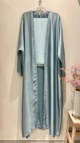 MINT METALLIC CREPE ABAYA WITH SHEILA