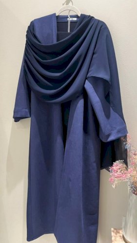 NAVY BLUE CREPE SHAWL ABAYA WITH SHAILA