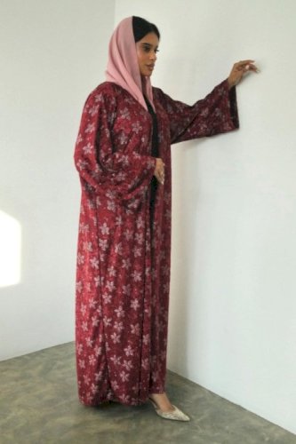 Maroon Velvet Abaya with Shaila