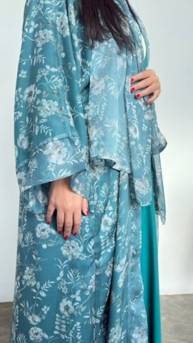 BEADED BEIGE ABAYA WITH LIGHT GREY SHAILA
